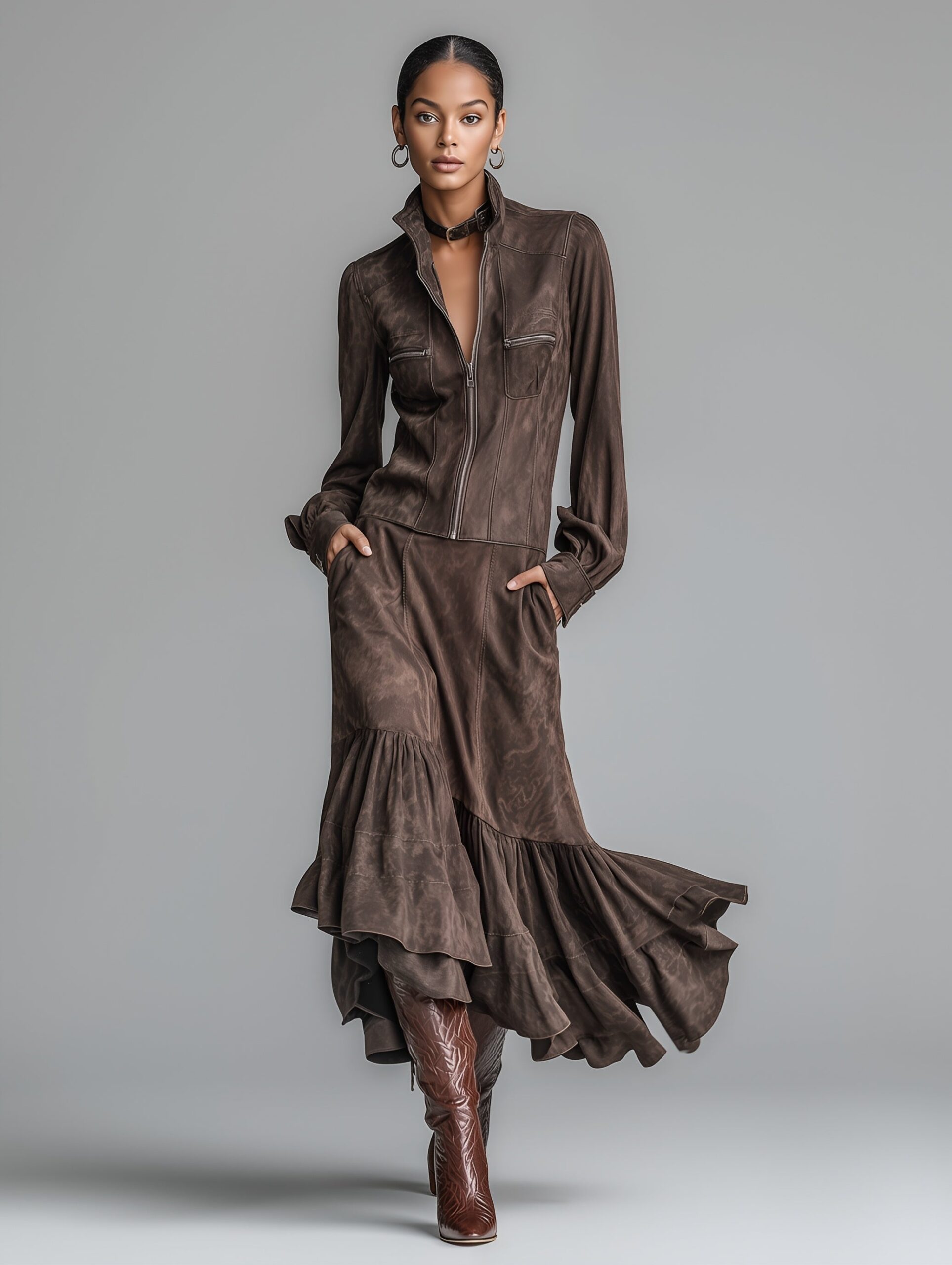 Women’s Suede Casual Retro Fashion Two-Piece Set MDA0416K6AN