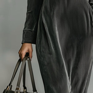 An elegant long dress crafted from soft corduroy fabric, featuring a flattering V-neckline and slim-fit silhouette. This refined piece blends timeless texture with a modern, feminine design ? perfect for both daytime sophistication and evening charm.